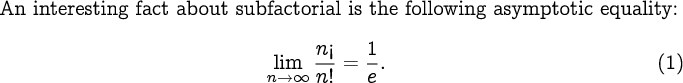An interesting fact about subfactorial is the following