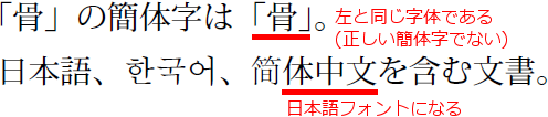 「骨」の簡体字は「\foreignlanguage{schinese}{骨}」。
