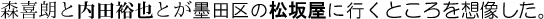 森喜朗と内田裕也とが墨田区の松坂屋に行くところを想像した。