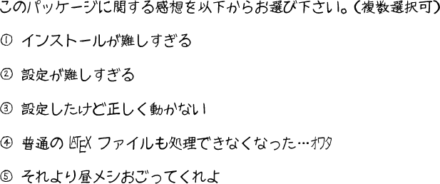 \item[④] 普通の {\LaTeX} ファイルも処理できなくなった…オワタ
