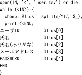 ユーザID = $flds[0]