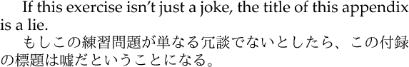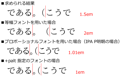 等幅フォントを指定して出力する。 この場合、約物が並んだ箇所で明らかに「空きすぎ」に見えるものが出てくる。 「日本語を含む段落を出力する」 で示した myjapanese.sty には