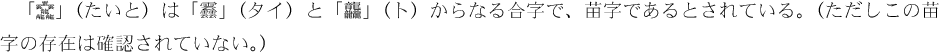 (ただしこの苗字の存在は確認されていない。)